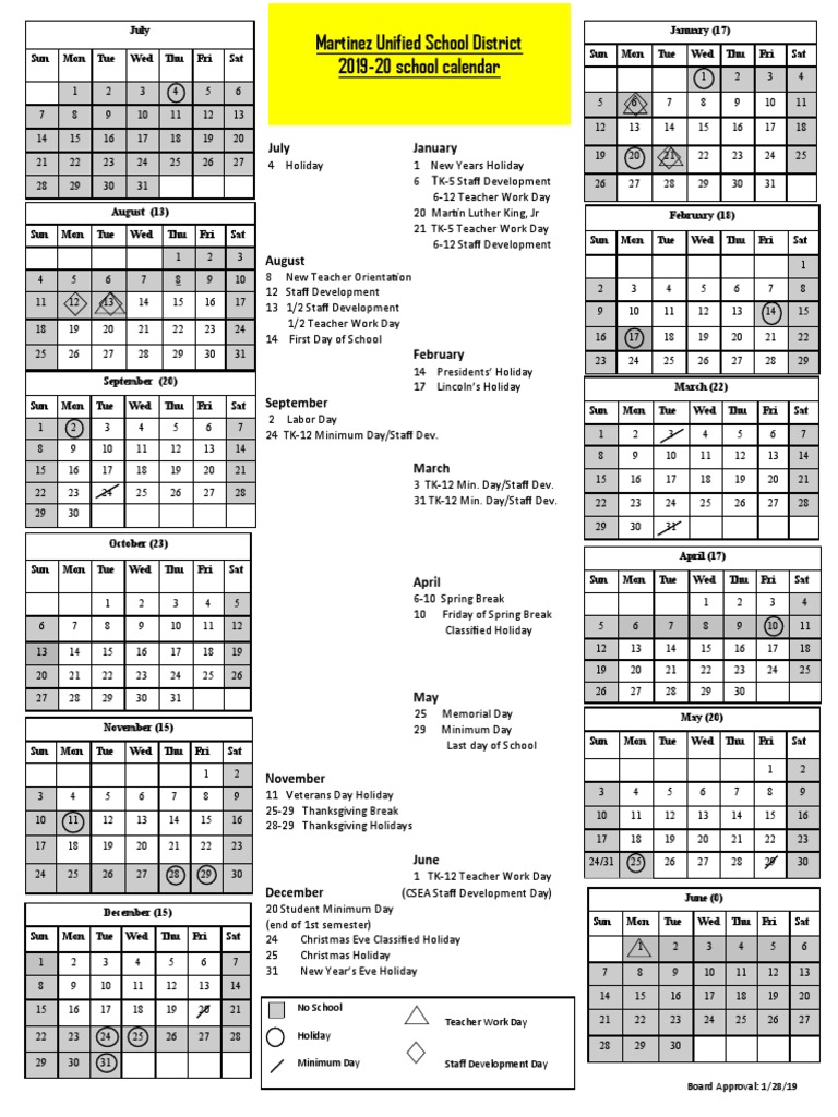 2019-2020 School-Year Calendar, Martinez Unified School ...